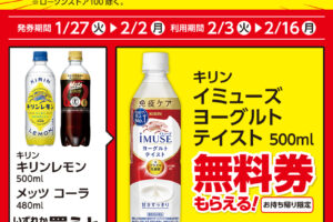 ローソンは2026年1月27日〜2月2日の期間、飲料1本もらえるキャンペーンを実施しています。 対象商品を購入すると、無料クーポンがレシートについてきます。 <購入対象商品> キリン キリンレモン 500ml…