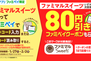 ファミリーマートは2026年1月27日〜2月2日の期間、ファミマアプリ限定で、「ファミマルスイーツ」購入で80円引きクーポンをプレゼントしています。 「ファミマルスイーツ」を購入すると、レシートに「ギフトコード」及び「Q…