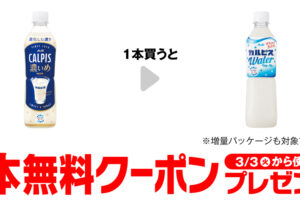 セブンイレブンは2026年2月24日〜3月2日の期間、「カルピス濃いめ」購入で「カルピスウォーター」無料券をプレゼントしています。 「カルピス濃いめ 490ml」を購入すると、「カルピスウォーター 500ml」と交換でき…