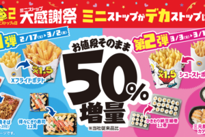 ミニストップ、2026年2月17日〜3月2日 人気商品を通常より50%増量した「増量フェア」を開催