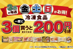 セブンイレブン、2026年3月の毎週金土日は冷凍食品を一度に3個買うと200円引き