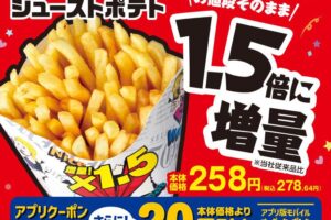 ミニストップは2026年3月3日〜16日の期間、シューストポテト1.5倍増量キャンペーンを実施しています。 キャンペーンでは、値段そのままに、シューストポテトが1.5倍に増量です。 価格は278.64円。 ミニストップア…