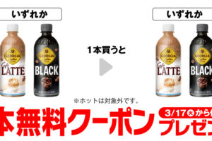 セブンイレブンは2026年3月10日〜16日の期間、「ジョージア カフェラテ」購入で「ジョージア ブラック」無料券をプレゼントしています。 「ジョージア カフェラテ 500ml」を購入すると、「ジョージア ブラック 50…
