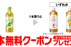 セブンイレブンは2026年3月10日〜16日の期間、「キリン 生茶」購入で対象の「午後の紅茶」無料券をプレゼントしています。 「キリン 生茶 600ml」を購入すると、「キリン 午後の紅茶 おいしい無糖 600ml」「キ…