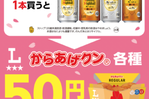 ローソンは2026年3月10日〜23日の期間、対象のお酒購入でからあげクン各種値引券がもらえるキャンペーンを実施しています。 対象商品を購入すると、50円引券がレシートについてきます。 <購入対象商品> サン…