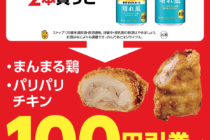 ローソンは2026年3月10日〜23日の期間、対象のお酒購入でまんまる鶏・パリパリチキン値引券がもらえるキャンペーンを実施しています。 対象商品を購入すると、100円引券がレシートについてきます。 <購入対象商品&…