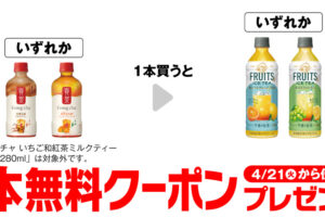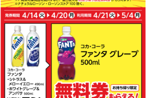 ローソンは2026年4月14日〜20日の期間、飲料が1本もらえるキャンペーンを実施しています。 対象商品を購入すると、無料クーポンがレシートについてきます。 <購入商品> コカ・コーラ ファンタシトラス&メロ…
