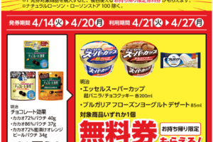 ローソンは2026年4月14日〜20日の期間、アイス1個もらえるキャンペーンを実施しています。 対象商品を購入すると、無料クーポンがレシートについてきます。 <購入対象商品> 明治 チョコレート効果 カカオ7…