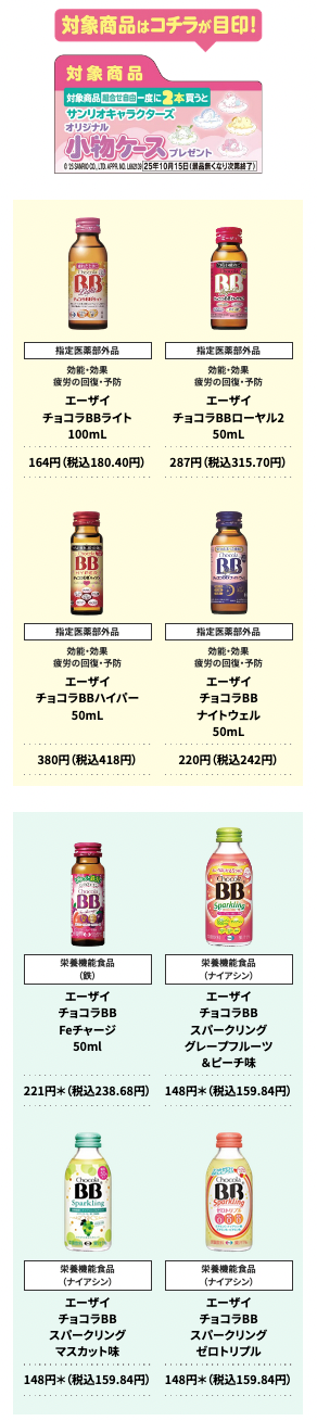 セブンイレブンは2025年10月2日7時〜15日の期間、対象のチョコラBBドリンクを2本購入で『サンリオキャラクターズ』の小物ケースをプレゼントします。