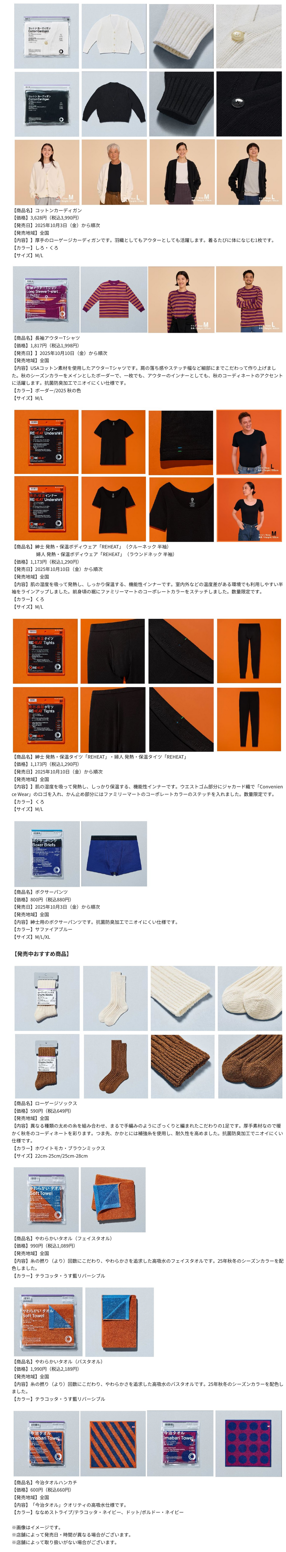 ファミリーマートは2025年10月3日より「コンビニエンスウェア」の秋冬に向けた新作を発売しています。