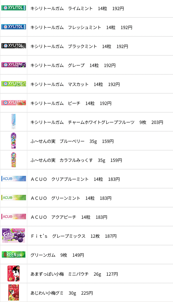 キシリトールガム チャームホワイトグレープフルーツ 9枚 203円