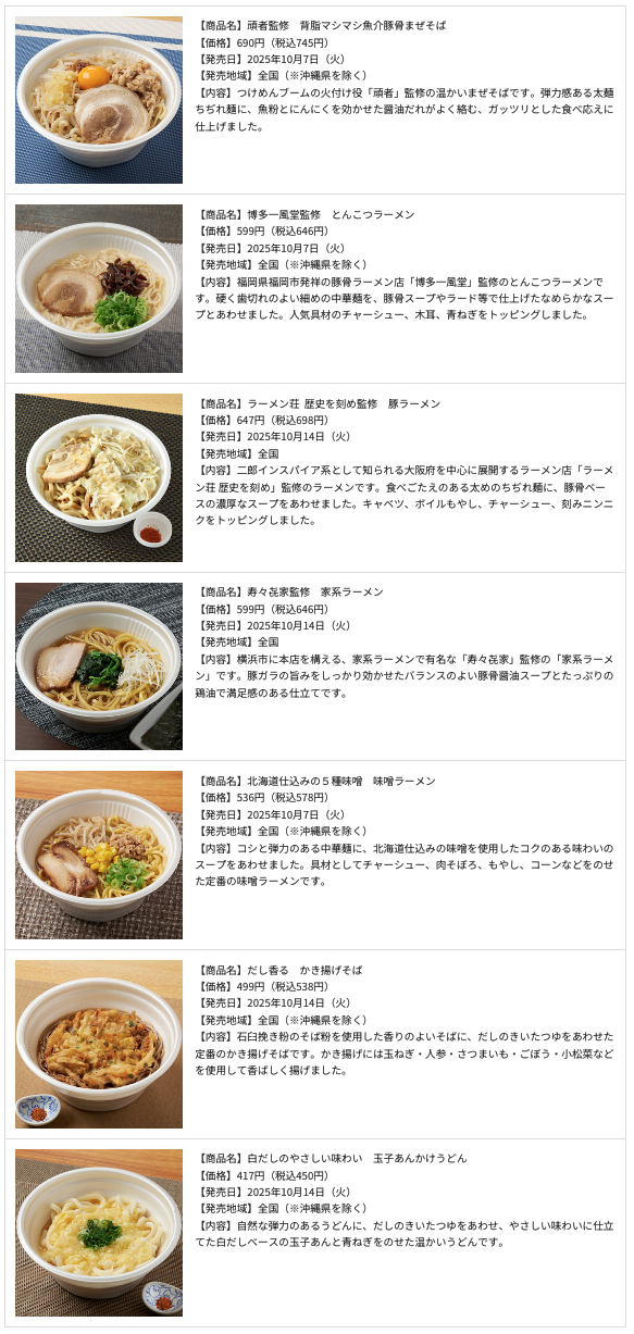 ファミリーマートは2025年10月7日より「名店監修だから本格的!うまい麺!」を発売しています。