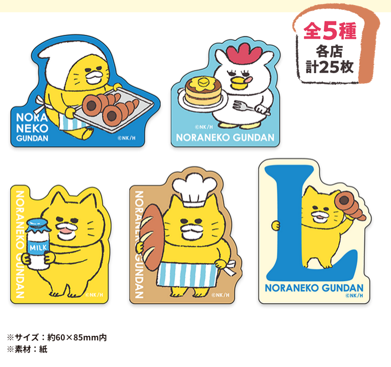 ローソンは2025年10月7日7時〜20日の期間、対象のパン2品購入で『ノラネコぐんだん』のオリジナルステッカーをプレゼントします。