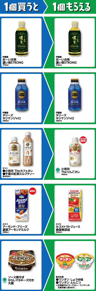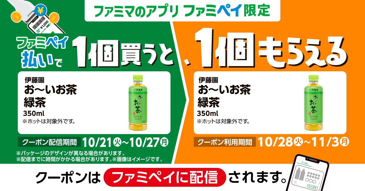 ファミリーマートは2025年10月21日〜27日の期間、1個買うと1個もらえるキャンペーンを実施しています。
