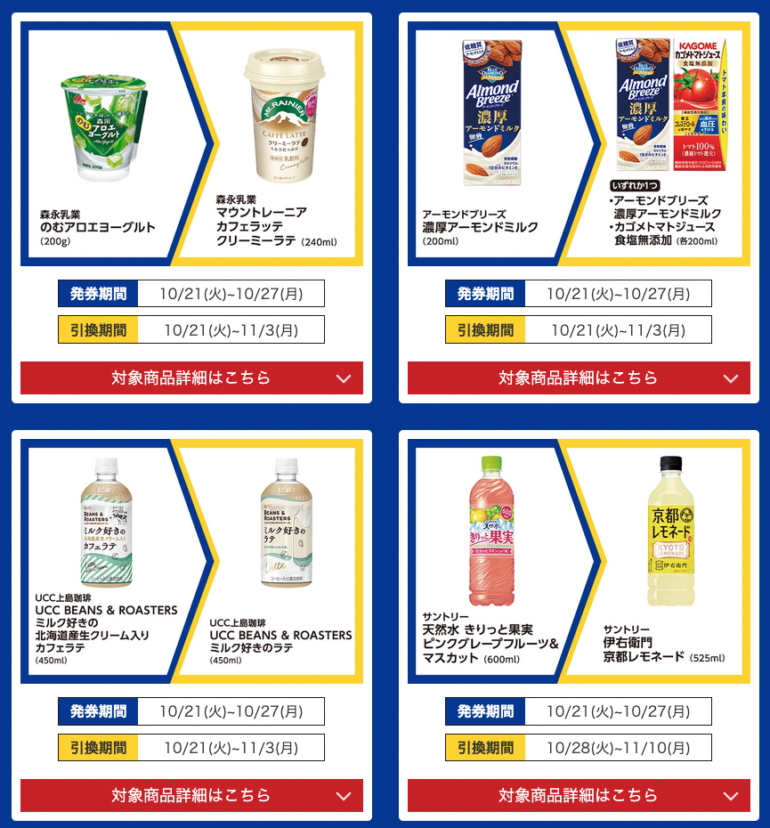 引換期間は2025年10月21日〜11月3日と10月28日〜11月10日です。