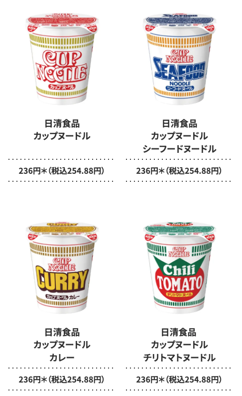・カップヌードル 254.88円