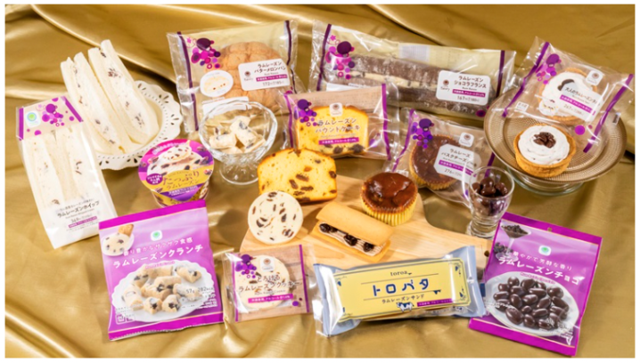 フェアでは、「ラムレーズン」の味わいのデザートや焼き菓子、パン、菓子、サンドイッチ、アイスなど全11種類を展開します。