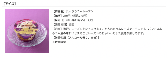 ファミリーマートは2025年11月25日より、濃厚な香りにこだわった「ラムレーズン」フェアを開催します。