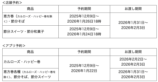 ローソンは2025年12月9日より、「恵方巻」など2026年の節分に向けた商品の予約を開始します。