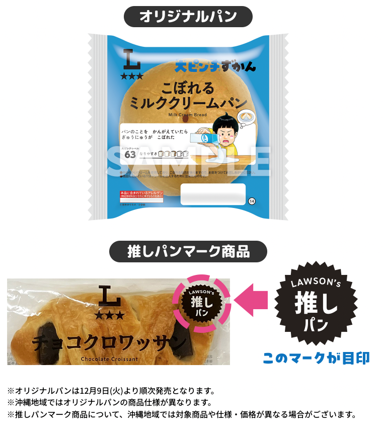 ローソンは2025年12月9日7時〜22日の期間、対象のパン2品購入で『大ピンチずかん』のオリジナルステッカーをプレゼントします。