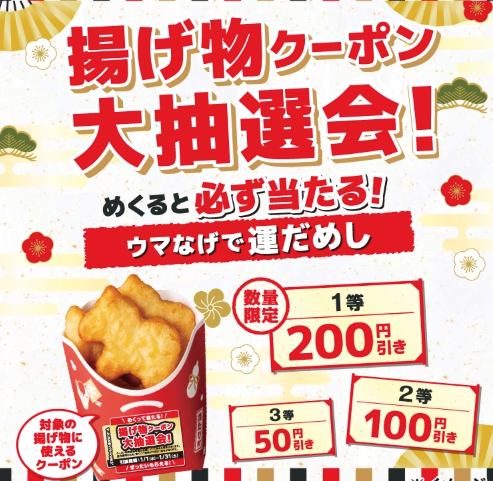 セブンイレブンは2026年1月1日〜31日の期間、「ウマなげ」購入で次回から使える割引クーポンをプレゼントします。