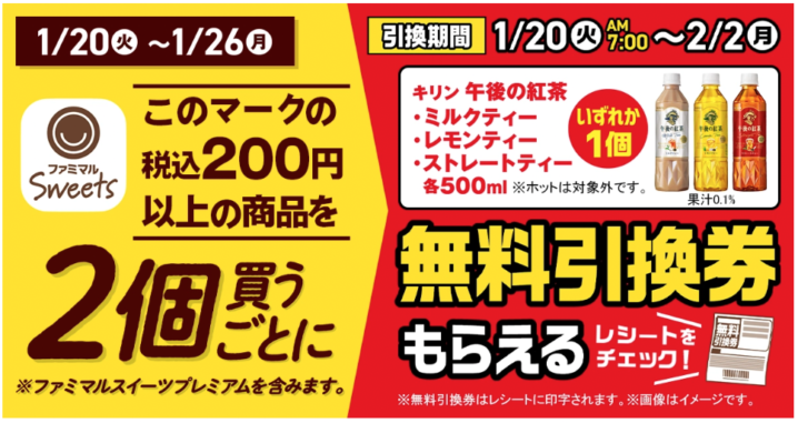 2026.01.20 ファミリーマート hands ファミリーマート、2026年1月20日〜26日 税込200円以上のファミマルスイーツを2個買うごとに対象の飲料無料引換券プレゼント Twitter Facebook Google+ はてブ Pocket ファミリーマートは2026年1月20日〜26日の期間、税込200円以上のファミマルスイーツを2個買うごとに対象の飲料無料引換券をプレゼントしています。 [via=ファミリーマート] -スポンサーリンク- Twitter Facebook LINE feedly