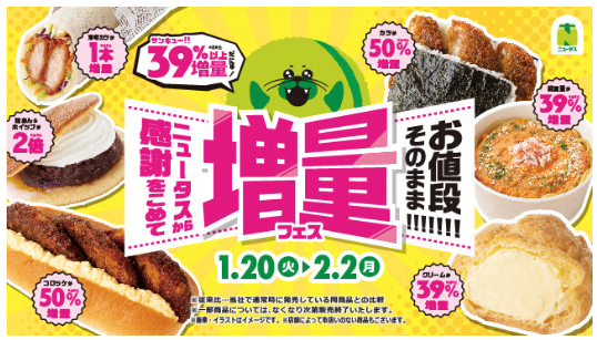 NewDays・NewDays KIOSKは2026年1月20日〜2月2日の期間、お値段そのまま増量フェスを実施しています。