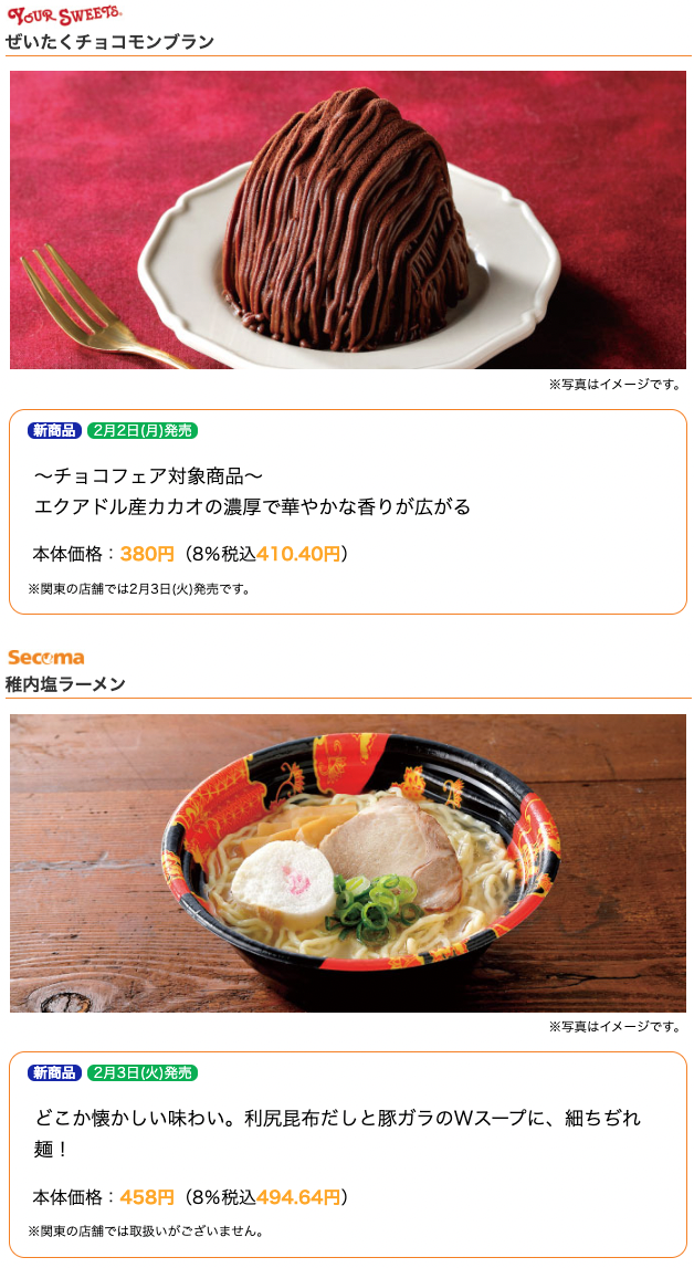 セイコーマートが2026年2月2日の週に発売する新商品です。