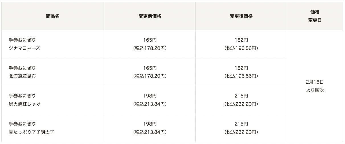 セブンイレブンは2026年2月16日より順次、おにぎりなど米飯商品を値上げします。