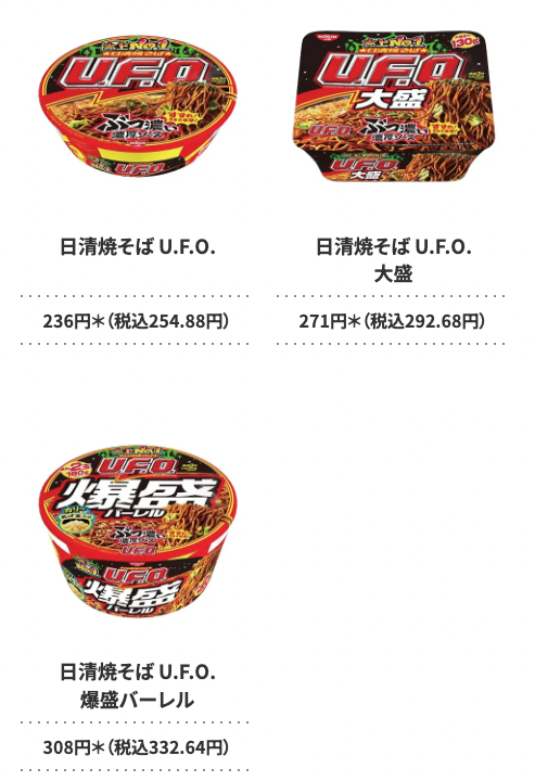 ・日清焼そば U.F.O.大盛 271円(税込292.68円)
