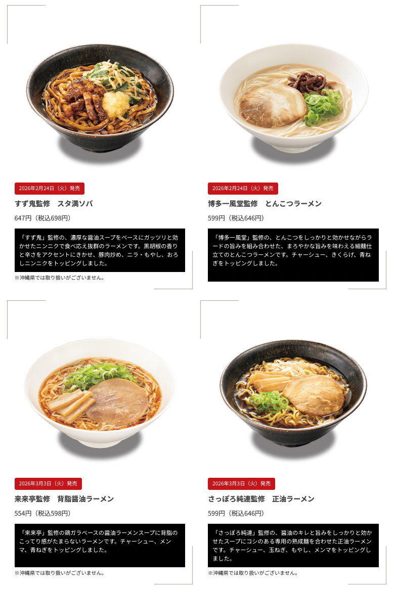 ファミリーマートは2026年2月24日より、全国各地をめぐる至福の「名店監修ラーメン巡り」を開催しています。