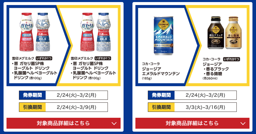 引換期間は2026年2月24日〜3月9日 or 3月3日〜16日です。