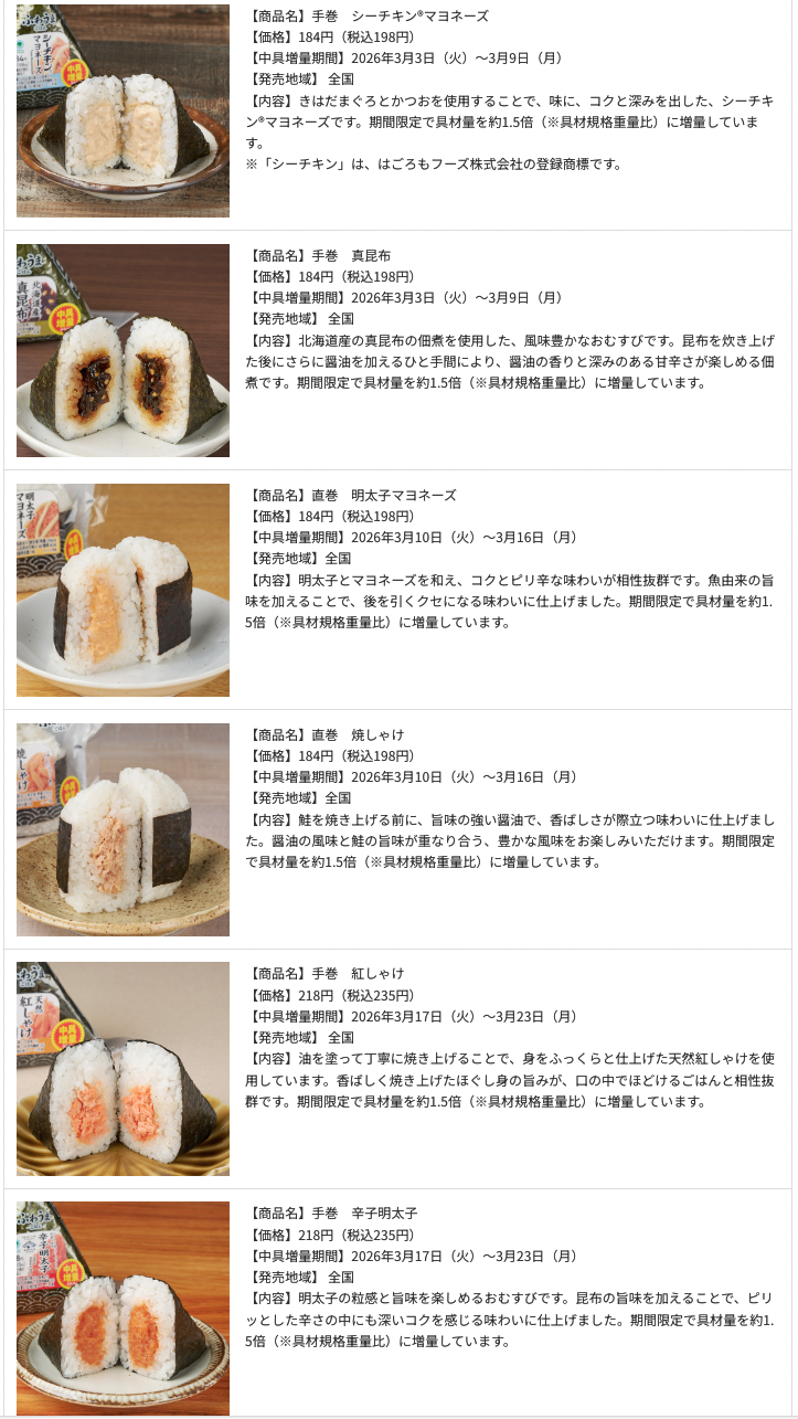 ファミリーマートは2026年3月3日より「大きなおむすび」シリーズを3種類発売し、具材増量キャンペーンも実施します。