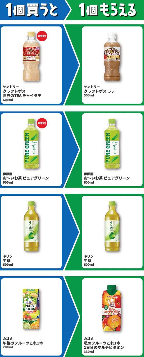 ・以下は対象商品を購入すると、無料引換券がレシートに印字されます