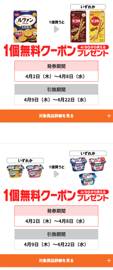 セブンイレブンは2026年4月2日〜8日の期間、1つ買うと1つもらえるキャンペーンを実施しています。