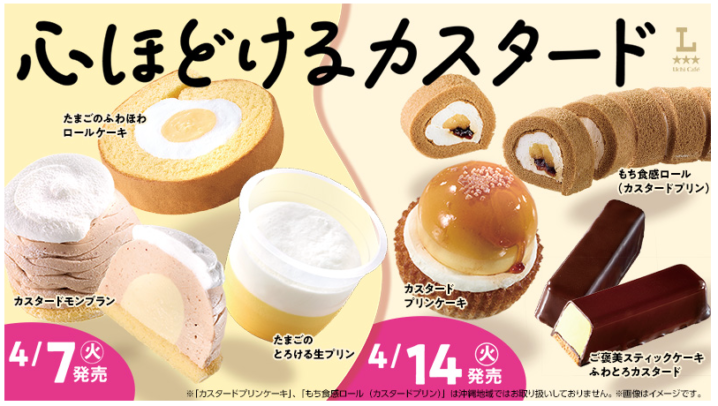 ローソンは2026年4月7日より、2週にわたってカスタードスイーツを発売します。