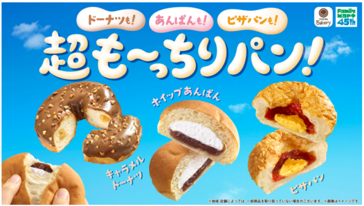 ファミマルBakery(ファミマルベーカリー)」の人気パンが、これまでにない“超も~っちり”食感に進化した「超も~っちりパン」シリーズとして、「も~っちり食感キャラメルドーナツ」、「も~っちり食感ホイップあんぱん」、「も~っちり食感ピザパン」の3種類を発売です。