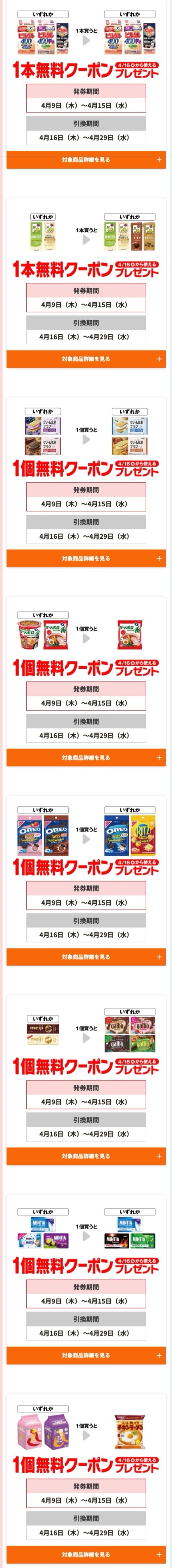 対象商品を1つ買うと、無料引換券がもらえます。