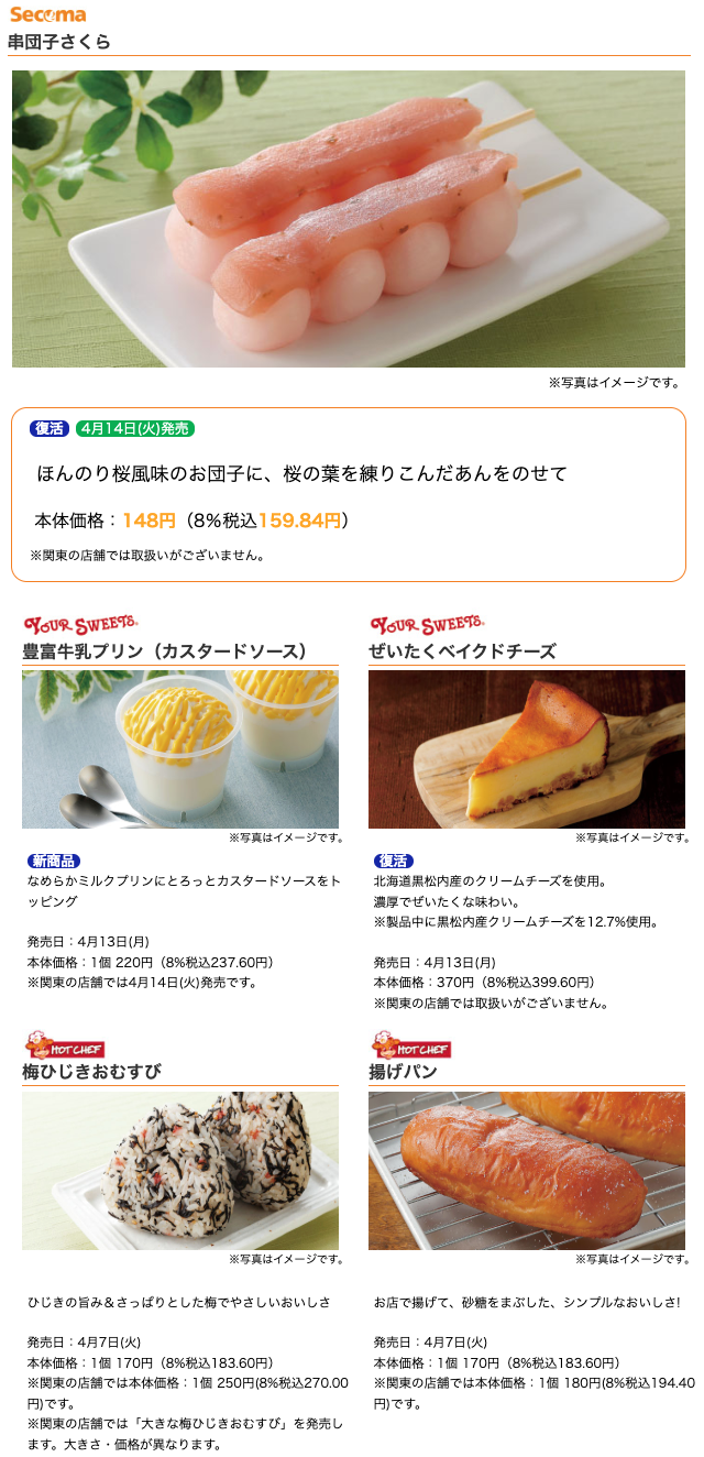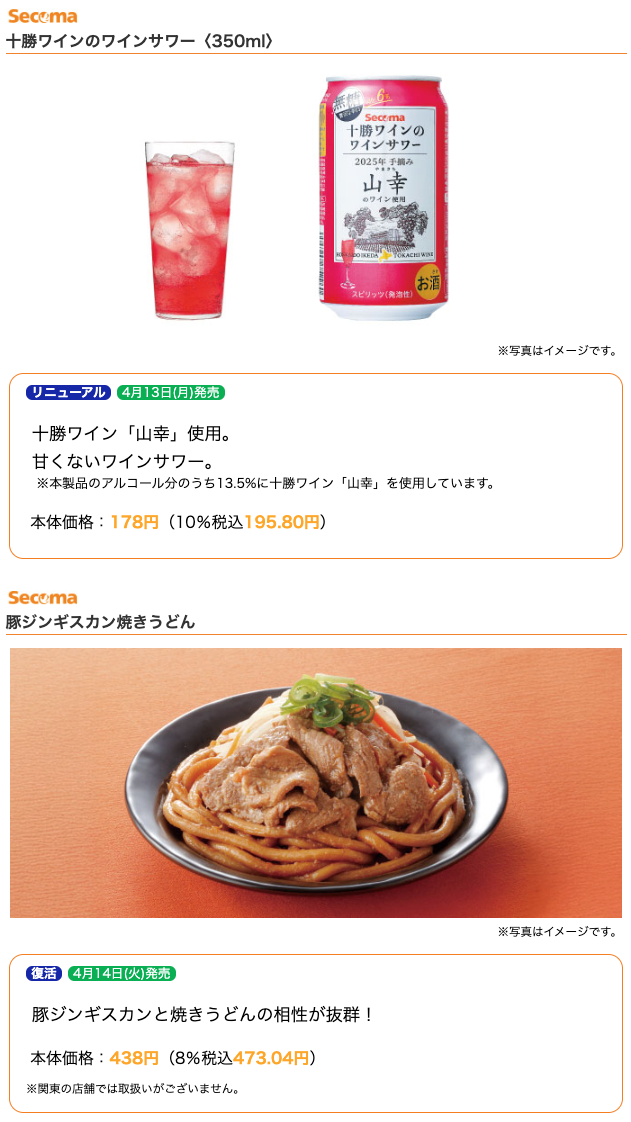 セイコーマートが2026年4月13日の週に発売する新商品です。
