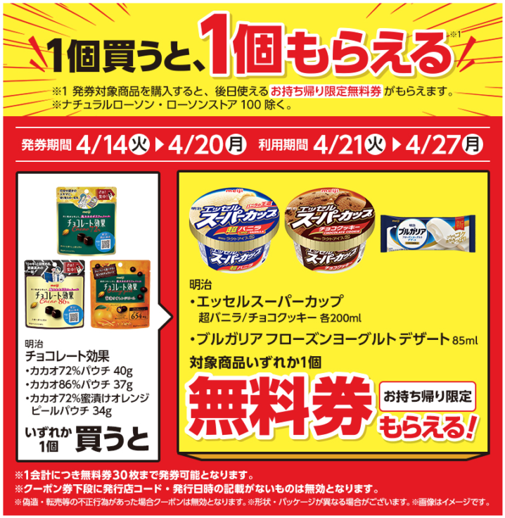 ローソンは2026年4月14日〜20日の期間、アイス1個もらえるキャンペーンを実施しています。
