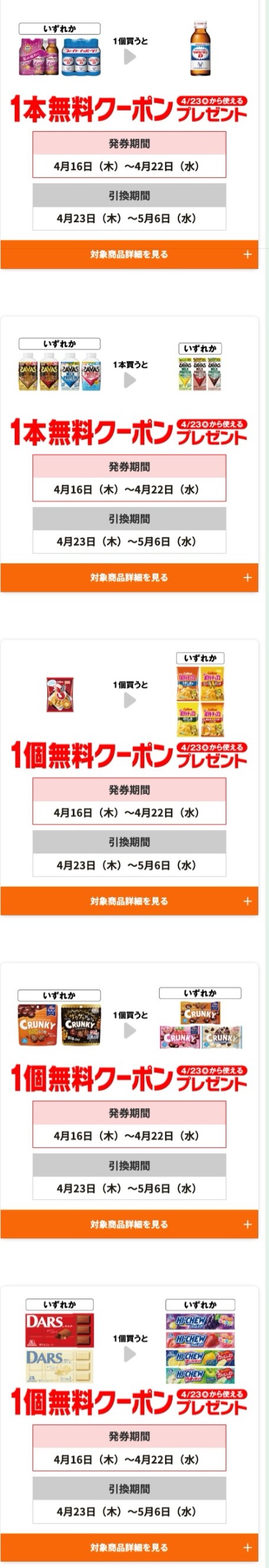 セブンイレブンは2026年4月16日〜22日の期間、1つ買うと1つもらえるキャンペーンを実施しています。